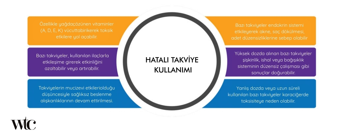 Yanlış Beklentiler: Takviyelerin mucizevi etkileri olduğu düşüncesiyle sağlıksız beslenme alışkanlıklarının devam ettirilmesi.