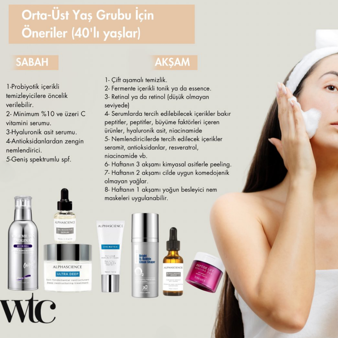 40'lı yaşlar, ciltte daha belirgin yaşlanma belirtilerinin ortaya çıktığı bir dönemdir. Dolayısıyla, cilt bakım rutininizi düzenli olarak uygulamak ve cildinizi genç ve sağlıklı tutmak önemlidir.