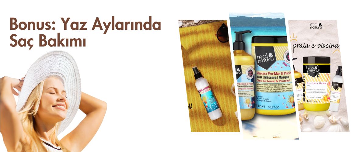 Nemlendirici Ürünler Kullanın: Yaz aylarında saçlarınızın nemini korumak için nemlendirici içerikli şampuanlar, kremler ve saç yağları kullanın. Real Natura’nın yaz aylarına özel güneşin/ havuzun/denizin etkilerine karşı oluşturduğu seriye göz atmayı unutmayın!